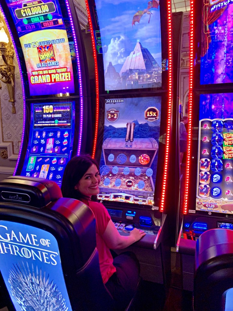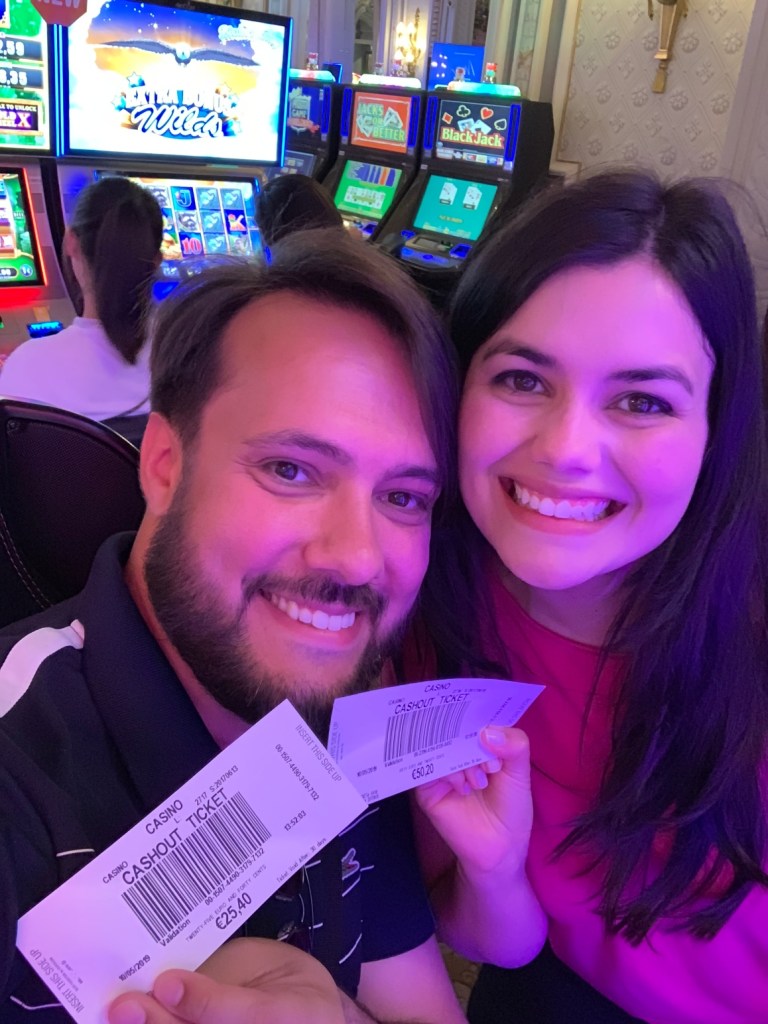 Depois da sobremesa, fomos conhecer o cassino e jogar um pouquinho. Aí veio a parte realmente divertida: ganhei o suficiente pra pagar a conta do almoço e ainda sobrou um pouquinho hahaha.